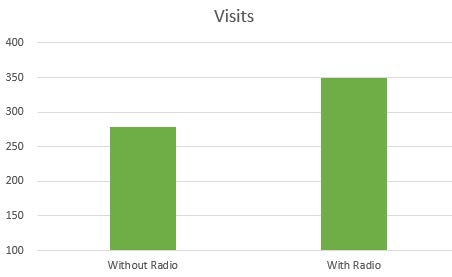 Running traditional media can also help boost your digital marketing efforts. For example, a regional healthcare facility ran a campaign which included paid search and broadcast radio. When the radio commercials were running, the digital campaign saw an increase of 13.38% in visits/clicks, and an 85.71% increase in calls.